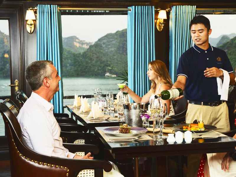 09:00 - 09:30: La Regina Legend Cruise luxury limousine picks you up at your hotel at Hanoi Old Quarter to travel to La Regina Private Lounge - arrive at around 11:30. The 2 - hour journey from Hanoi to Got Ferry via the new Hanoi - Hai Phong highway is seen as a much quicker and smoother than the classic 4 - hour drive to other ferries in Halong City. It’s a huge advantage when cruising with La Regina Legend Cruise.12:30: Let your vacation start with a welcome drink and wet towel during the time that our Cruise Manager introduce the safety briefing. The boat start to cruise to Lan Ha bay.